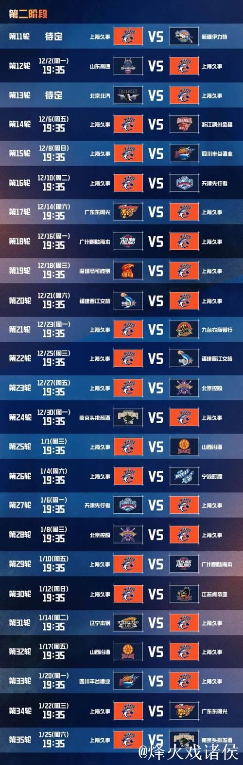 上海男篮公布常规赛日程:首战潜力赛今晚打响